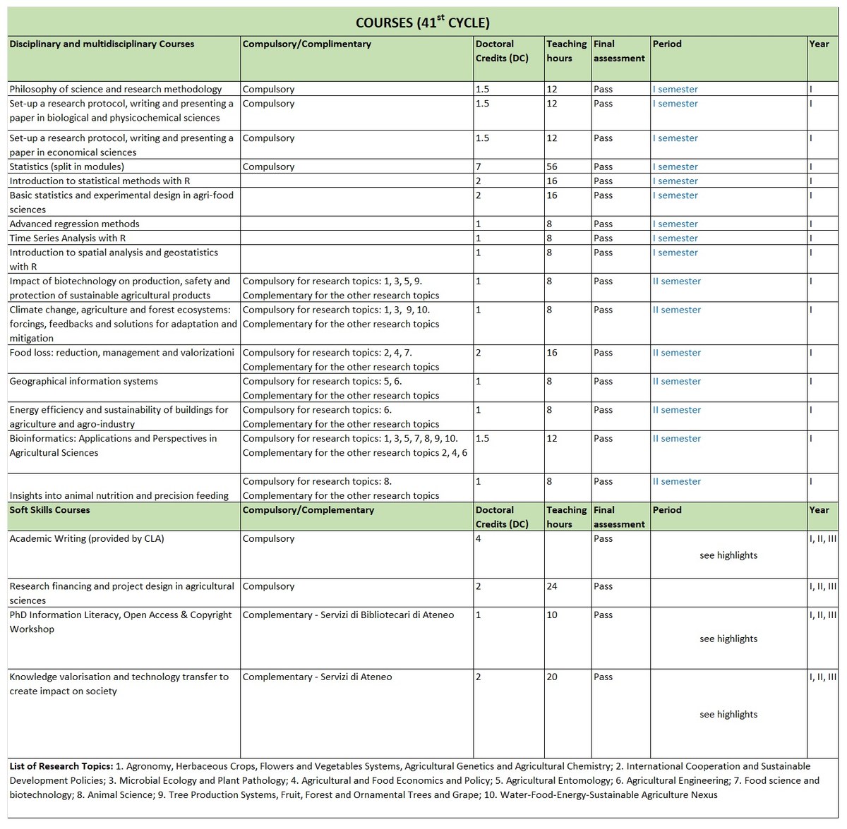 Each research topic has compulsory courses that each PhD student linked to those research area must attend
