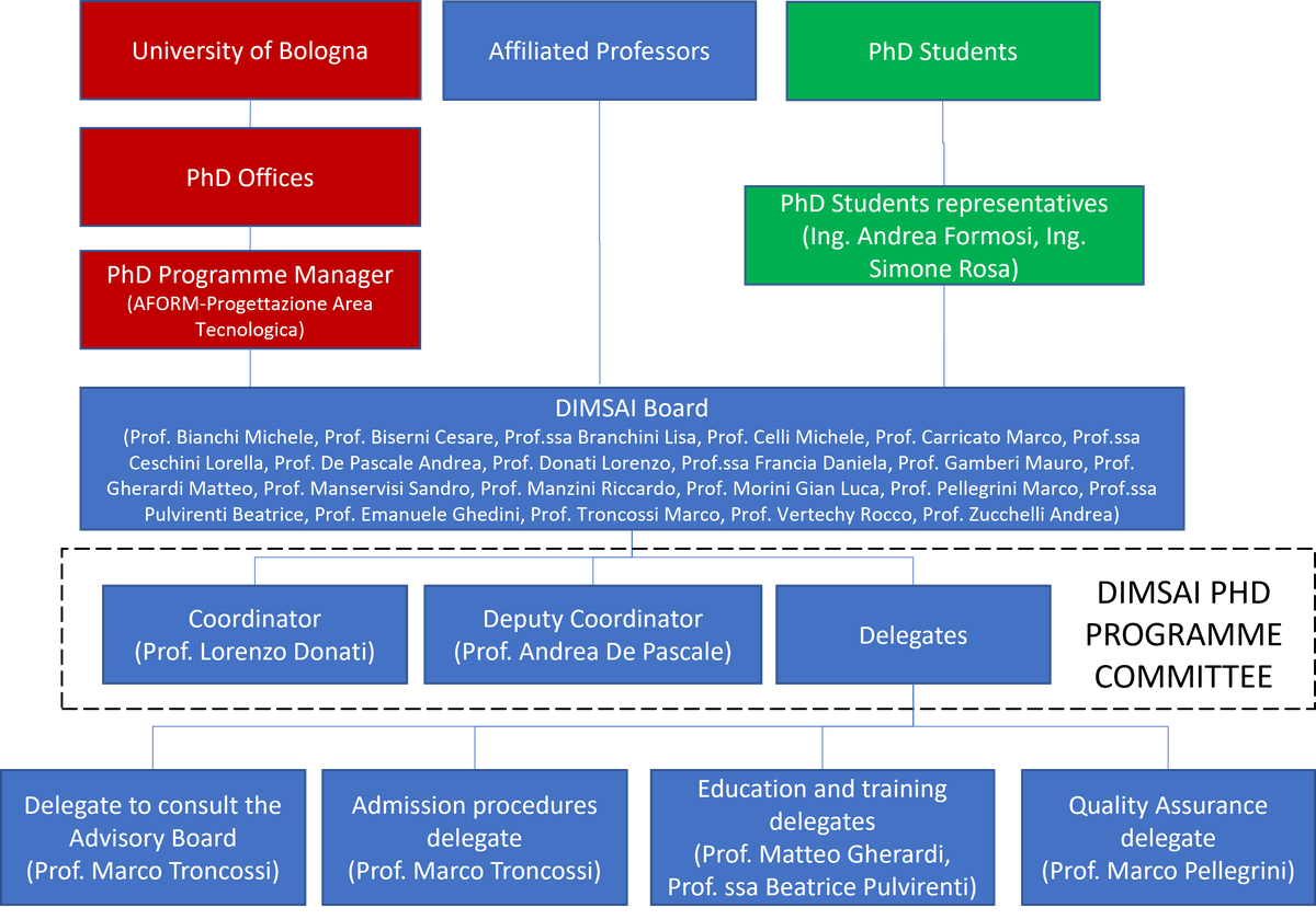The DIMSAI PHD Committee ("GIUNTA", in Italian) is composed by the following Board members, with specific delegations: